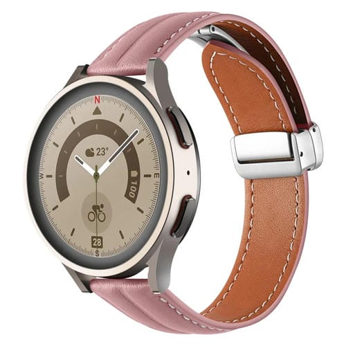 20mm Slotted Genuine Leather Watch Band with Folding Buckle, Silver Buckle (Dark Pink)