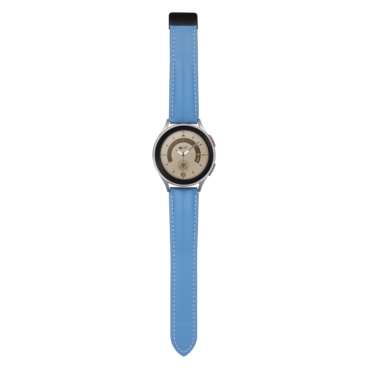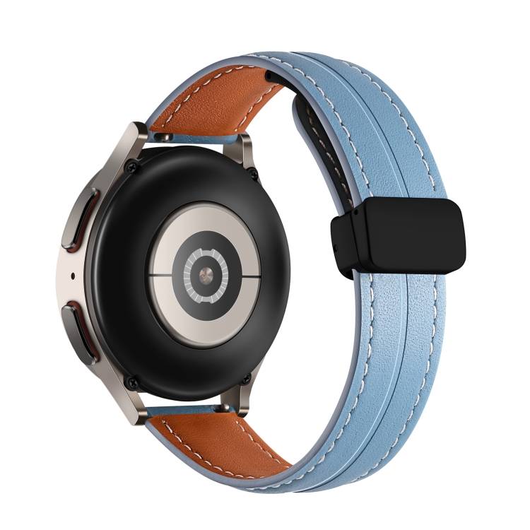 Correa de Reloj de Cuero Genuino Ranurado 22mm con Hebilla Plegable Negra (Azul)