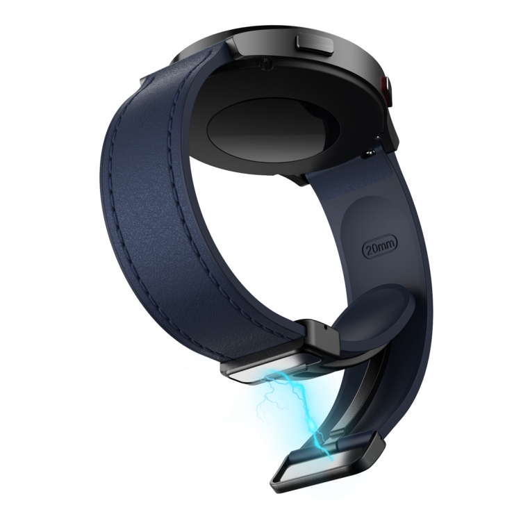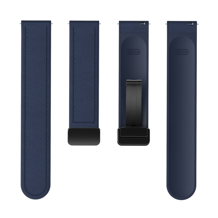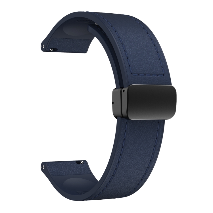 Correa de Reloj Cuero y Silicona 20mm Hebilla Magnética (Azul Medianoche)