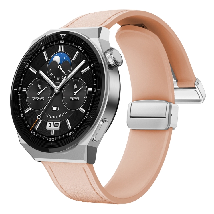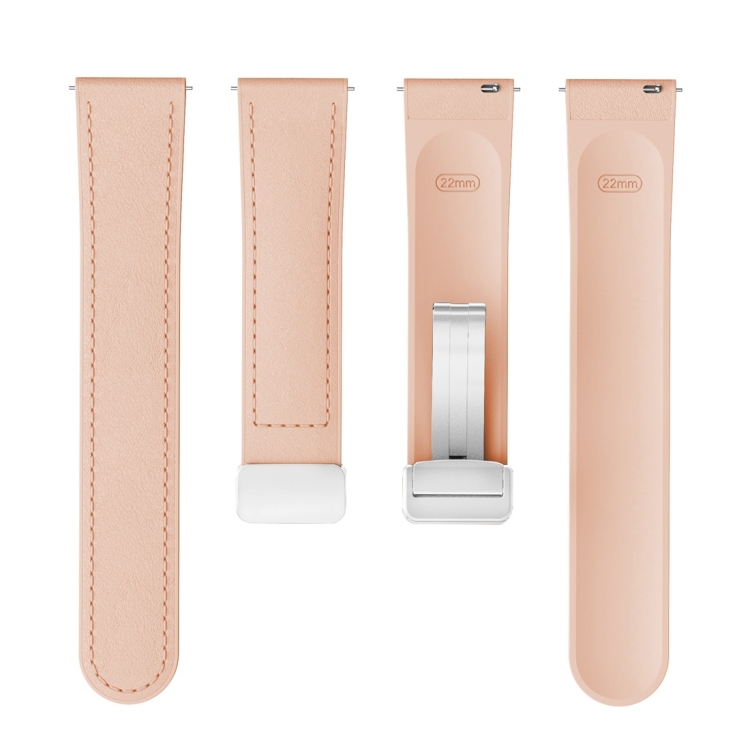 Correa de Reloj de Cuero y Silicona 22mm con Hebilla Magnética (Rosa)