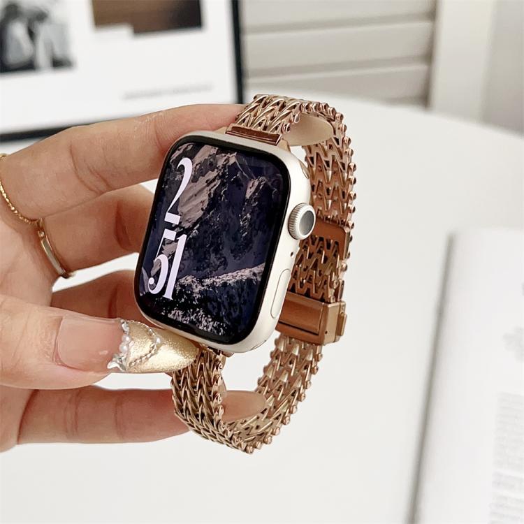 Correa de reloj de malla metálica de acero con cierre magnético delgado para Apple Watch de 42 mm / 41 mm / 40 mm / 38 mm (oro rosa)