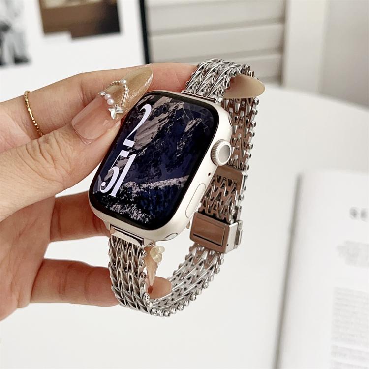 Correa de reloj de malla metálica de acero con cierre magnético delgado para Apple Watch de 42 mm / 41 mm / 40 mm / 38 mm (plateada)