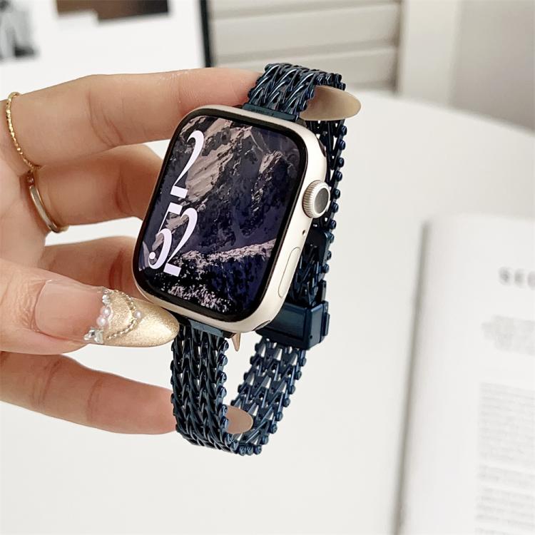 Correa de reloj de malla metálica de acero con cierre magnético delgado para Apple Watch de 46 mm / 49 mm / 45 mm / 44 mm (azul)
