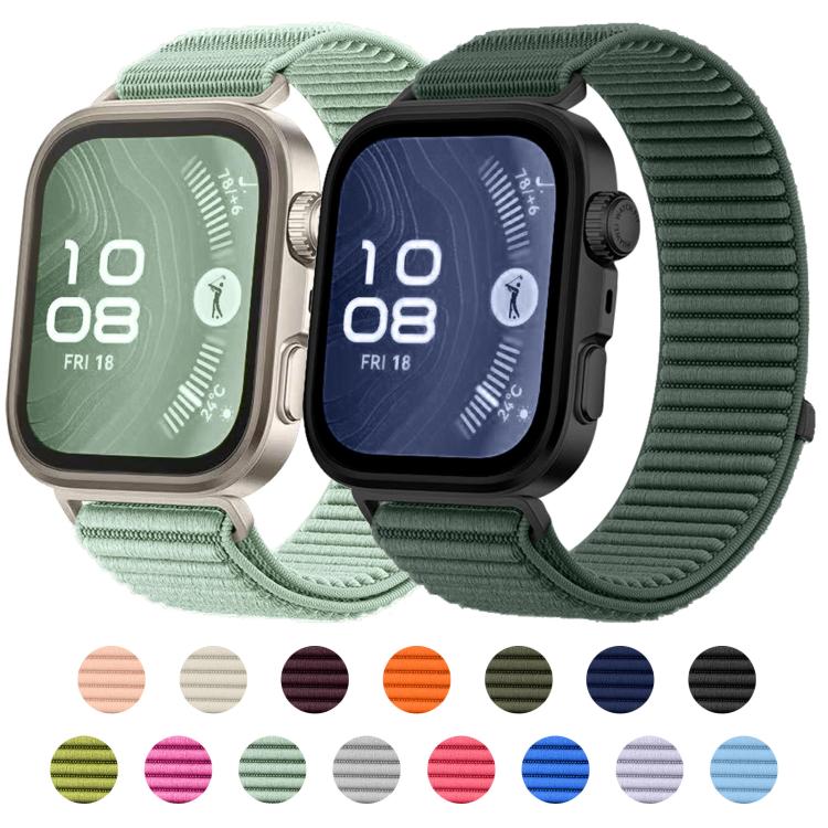 Correa de reloj de nailon tejido con cierre de velcro y interfaz metálica para Huawei Watch Fit 4, Fit 4 Pro y Fit 3 (rosa peonía)