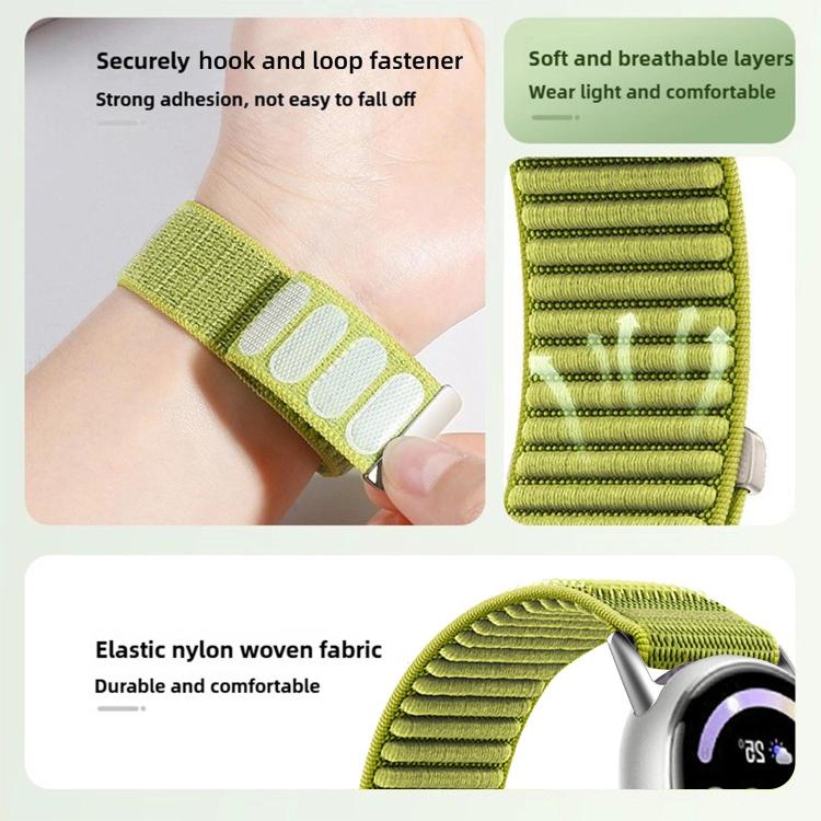 Correa de reloj de nailon tejido con cierre de velcro y interfaz metálica para Xiaomi Smart Band 10/9/8 (verde salvaje)