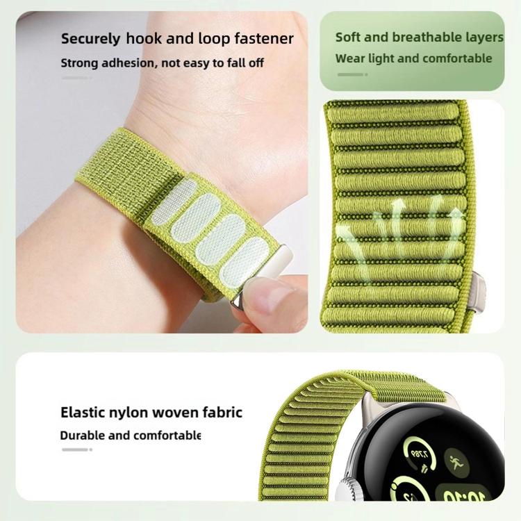 Correa de reloj de nailon tejido de 45 mm con cierre de velcro e interfaz metálica para Google Pixel Watch 4 / Watch 3 (Starlight)