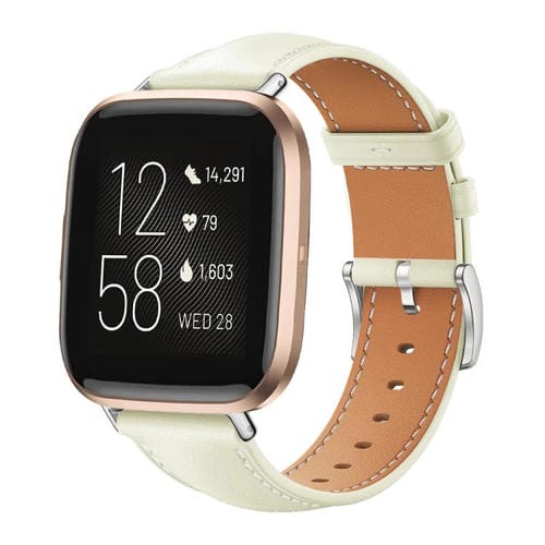 Correa de reloj de piel de grano fino con diseño de tiburón negro y cabeza plana de 20 mm para Fitbit Versa 2 / Versa / Versa Lite (blanco cremoso)