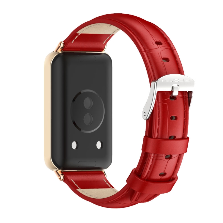Correa de Reloj de Piel de Vaca Mijobs para Honor Band 9 (Oro Rosa Rojo Bambú)