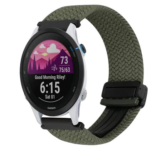 Correa de Reloj Trenzada Garmin Forerunner 255 Music 22mm con Hebilla Magnética (Verde Oliva)
