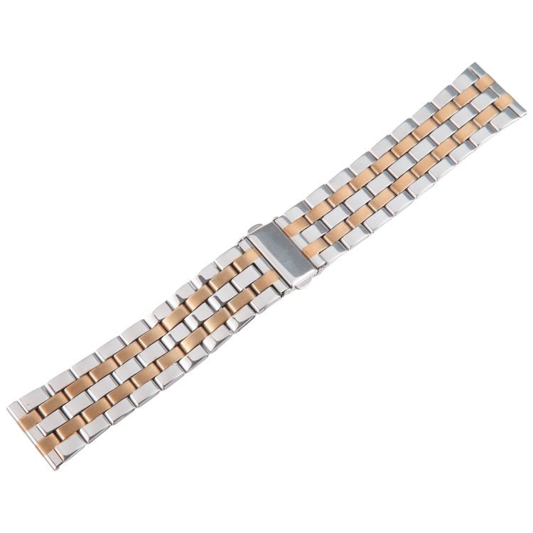 Correa de Reloj Universal Acero Inoxidable 22mm Cinco Cuentas (Oro Rosa Plateado)