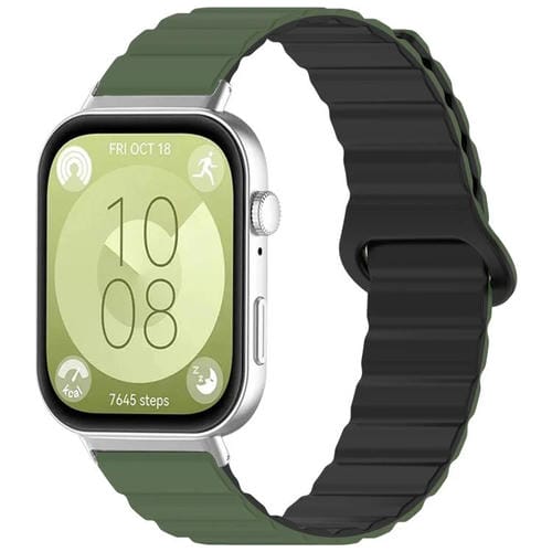 Correa de silicona brillante magnética para Huawei Watch Fit4 Pro / Fit4 / Fit3 xDfind Loop (verde militar y negro)