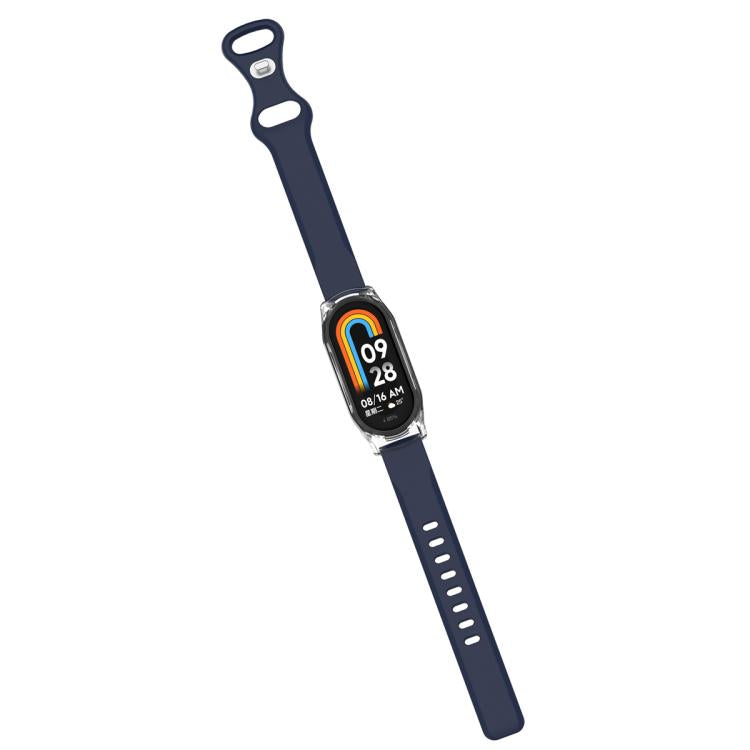 Correa de silicona con hebilla de mariposa para Xiaomi Smart Band 9/9 NFC con funda transparente (azul medianoche)