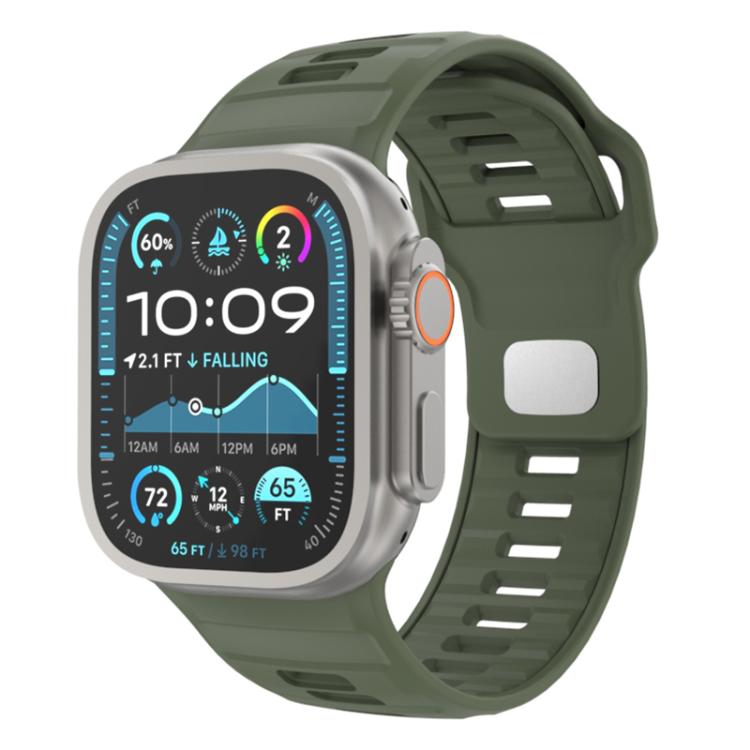 Correa de silicona con hebilla invertida a cuadros para Apple Watch de 46 mm, 49 mm, 45 mm y 44 mm (verde militar)