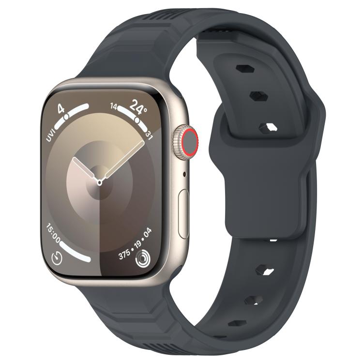Correa de silicona con hebilla invertida de grano vertical para Apple Watch de 46 mm, 49 mm, 45 mm y 44 mm (gris acero platino)