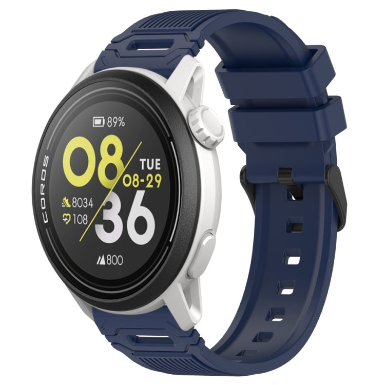 Correa de silicona con hebilla negra y patrón vertical para reloj COROS de 22 mm (azul marino)