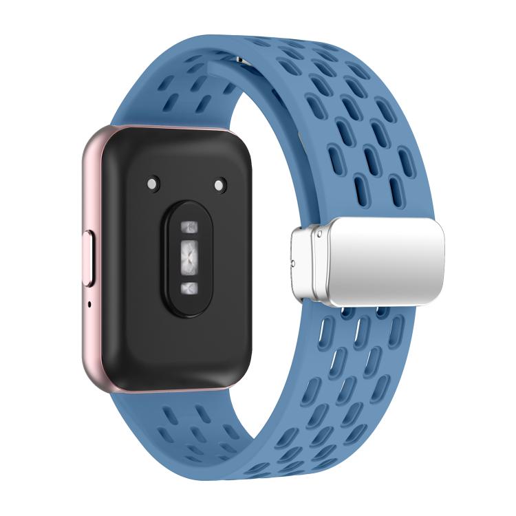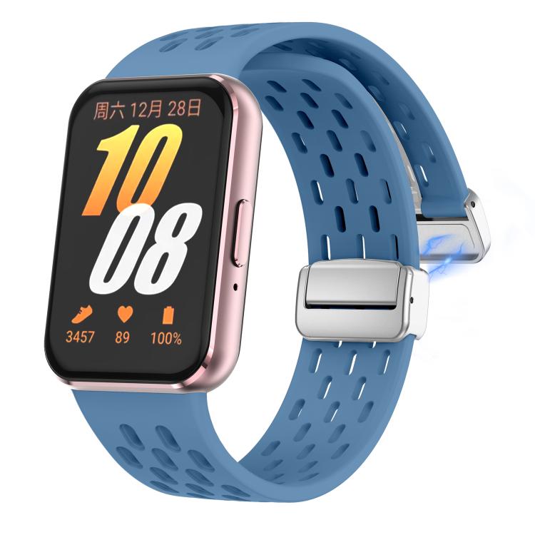 Correa de silicona con hebilla plateada magnética de malla para Samsung Galaxy Fit 3 xDfind (azul)