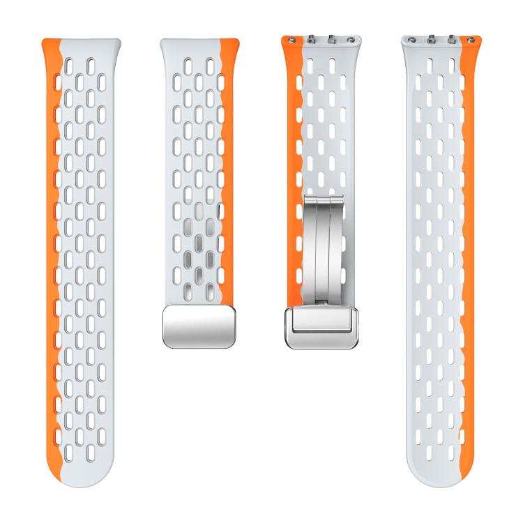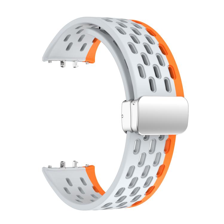 Correa de silicona con hebilla plateada magnética de malla xDfind para Samsung Galaxy Fit 3 (gris y naranja Wild Path)
