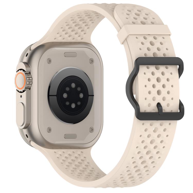Correa de silicona con orificios transpirables para Apple Watch de 46 mm, 49 mm, 45 mm y 44 mm (Starlight)