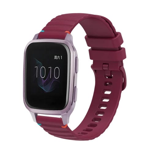 Correa de Silicona Garmin Venu Sq 20mm con Puntadas Onduladas y Puntos (Rojo Vino)