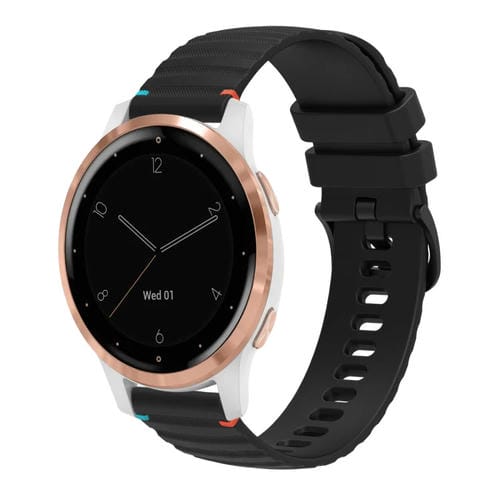 Correa de Silicona con Puntadas Onduladas y Puntos para Reloj Garmin Vivoactive 4S 18mm (Negra)