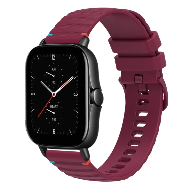 Correa de Silicona 20mm Amazfit GTS 2E Puntadas Onduladas Puntos (Rojo Vino)