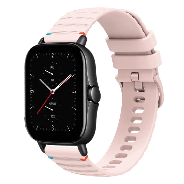 Correa de Silicona 20mm para Reloj Amazfit GTS 2E con Puntadas Onduladas y Puntos (Rosa)