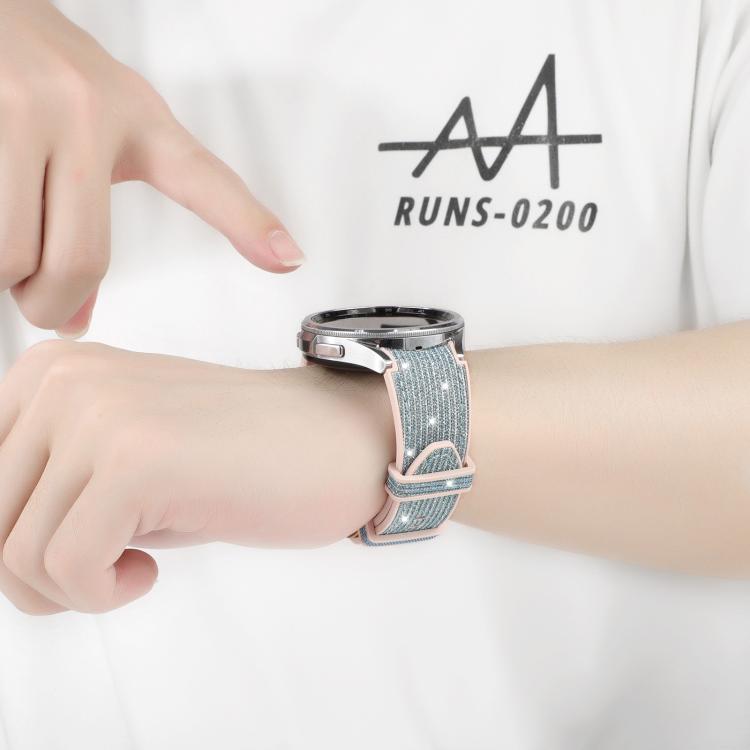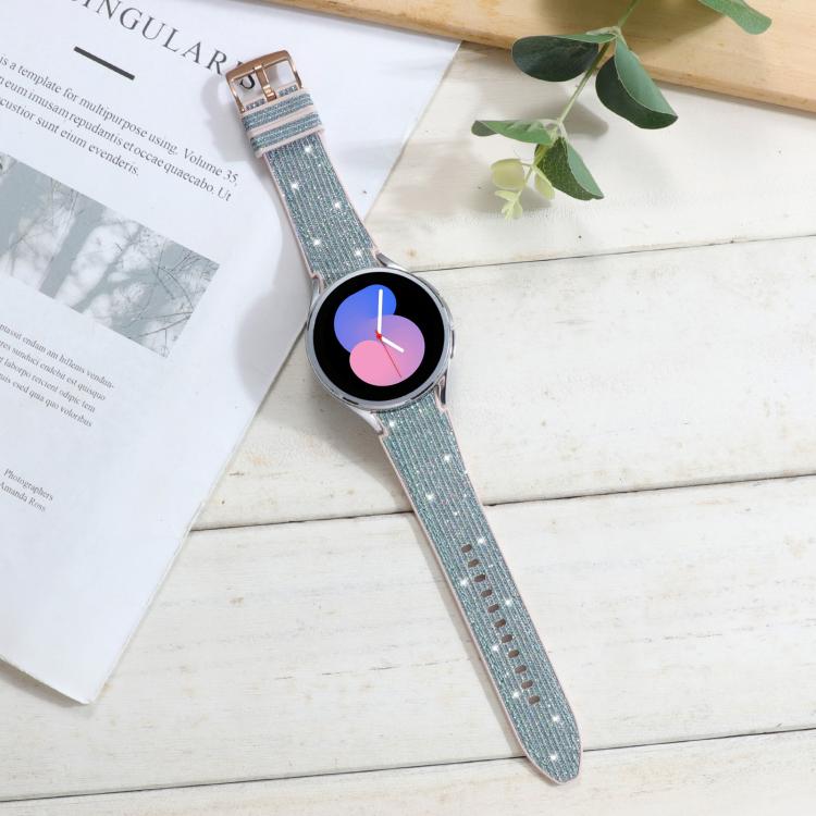 Correa de silicona híbrida de cuero con purpurina para Samsung Galaxy Watch 7 (40/44 mm) (azul)