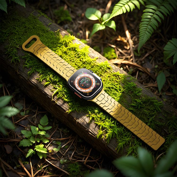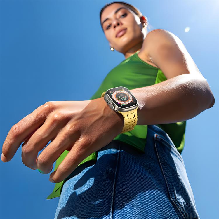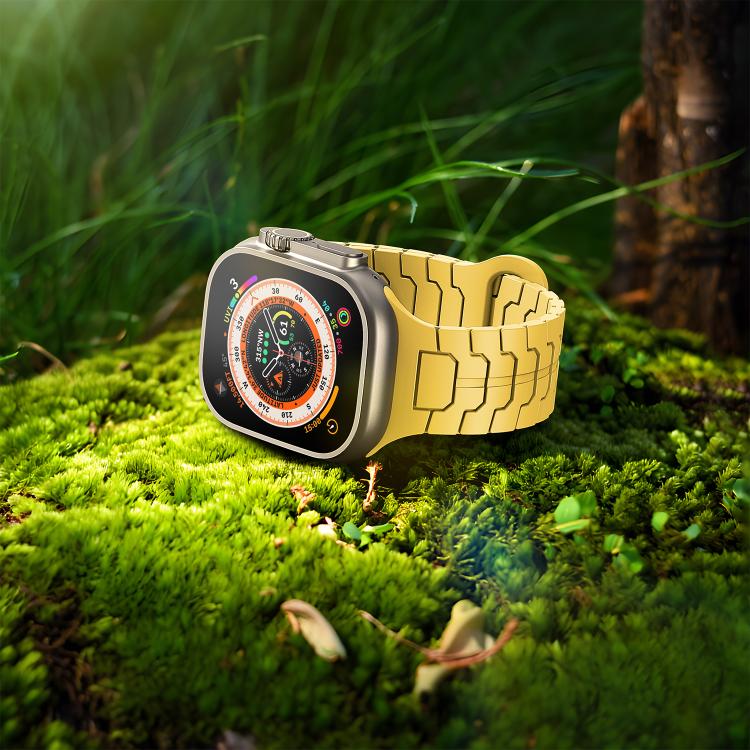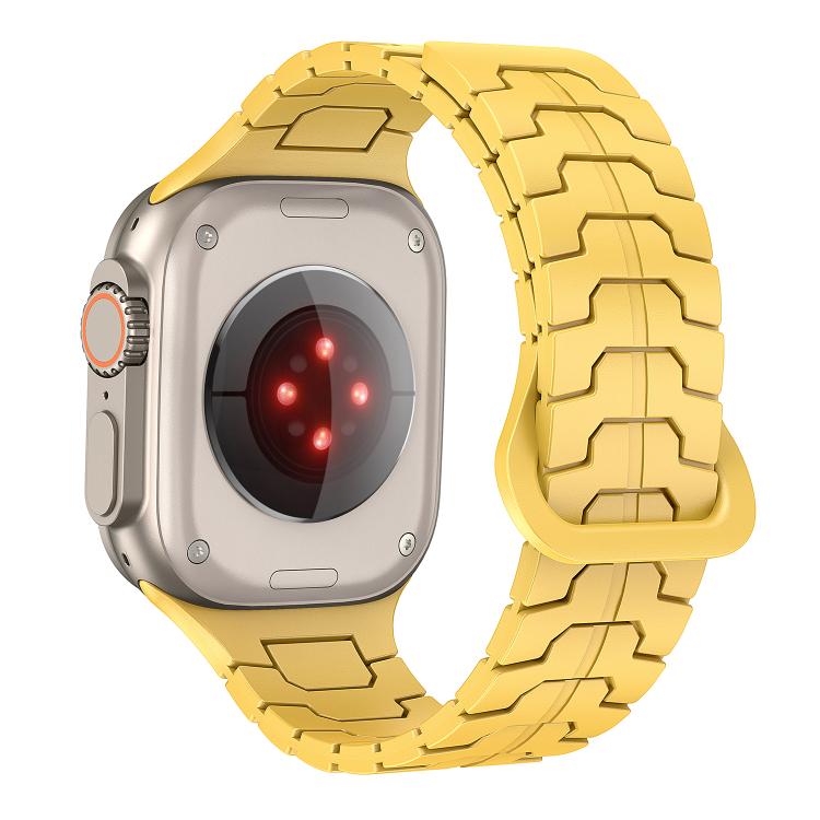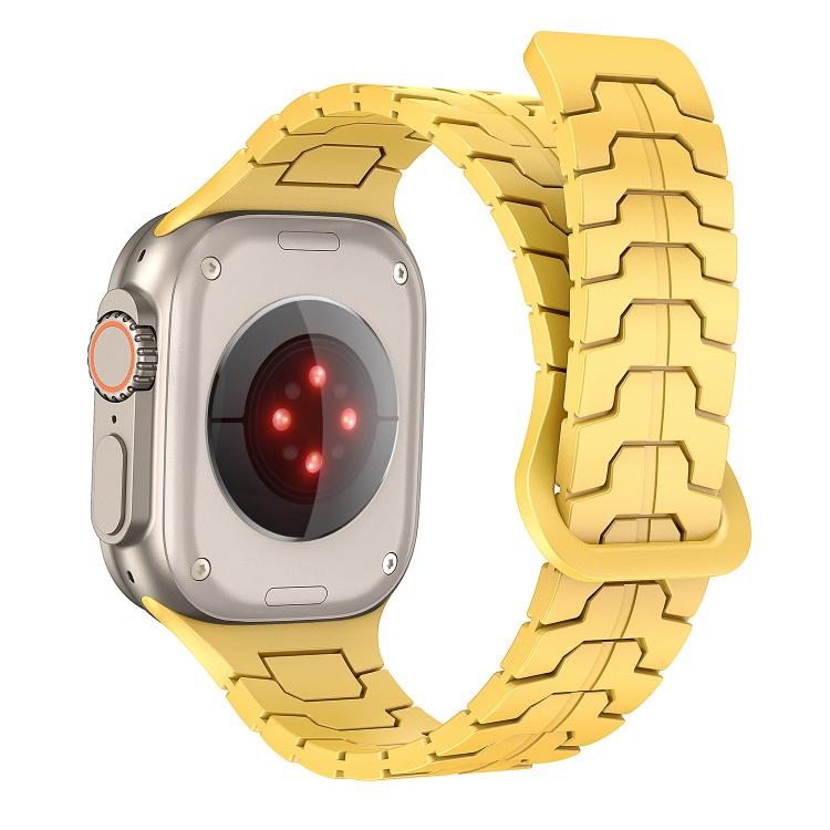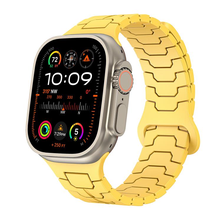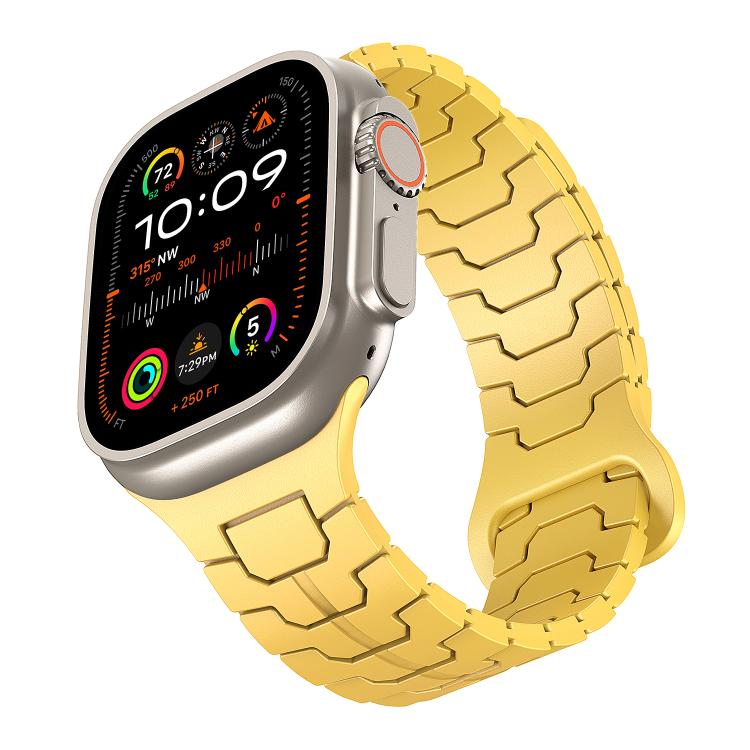 Correa de silicona magnética con diseño de escamas de dragón de acero para Apple Watch de 46 mm, 49 mm, 45 mm y 44 mm (amarillo limón)