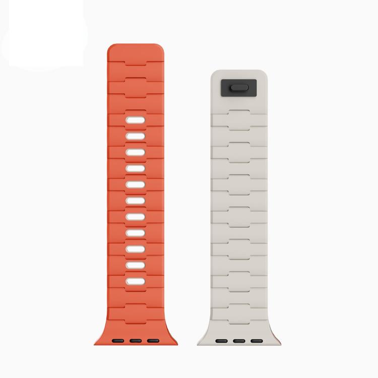 Correa de silicona magnética de un solo pasador con relieve de caballo para Apple Watch de 46 mm / 49 mm / 45 mm / 44 mm (Naranja Estelar)