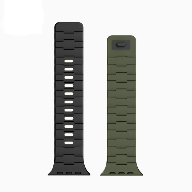 Correa de silicona magnética de un solo pasador con relieve de caballo para Apple Watch de 46 mm / 49 mm / 45 mm / 44 mm (verde militar y negro).