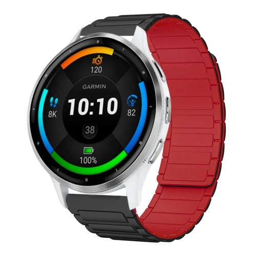Correa de Silicona Magnética en Forma de I para Reloj Garmin Venu 3 22mm (Negra y Roja)