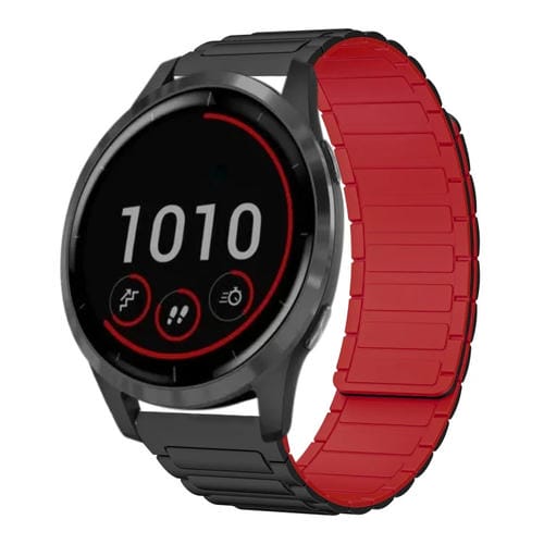 Correa de Silicona Magnética en Forma de I para Reloj Garmin Vivoactive 4 22mm (Negra y Roja)