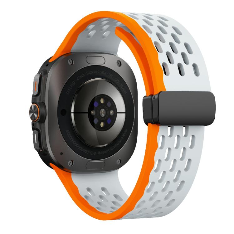 Correa de silicona magnética Kalebol Mesh para Samsung Galaxy Watch Ultra de 47 mm (gris y naranja Wild Path)