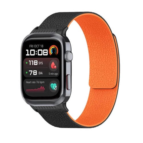 Correa de silicona magnética suave con textura de lichi para Huawei Watch D2 (negro y naranja)