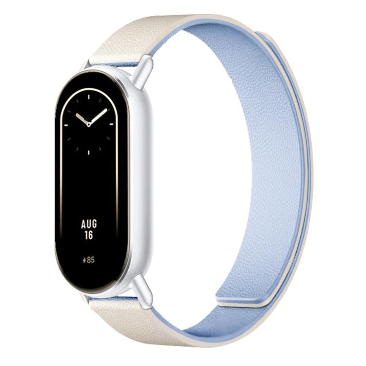 Correa de silicona magnética suave con textura de lichi para Xiaomi Smart Band 10/9/8 (blanco y azul)