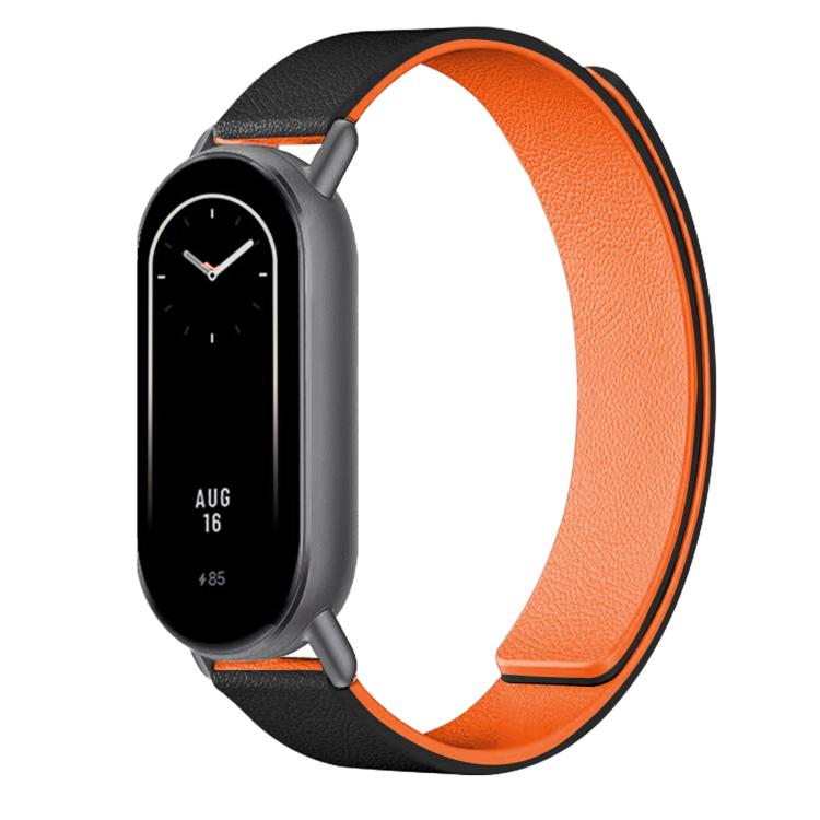 Correa de silicona magnética suave con textura Lychee para Xiaomi Smart Band 10/9/8 (negro y naranja)
