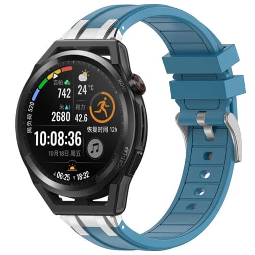 Huawei Watch GT Runner 22mm Silicone Watch Band Strap with Quick Release Silver Buckle (Navy Blue)