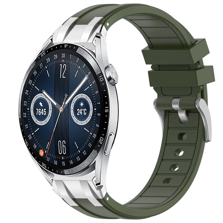 Correa de Silicona para Reloj Huawei Watch GT3 46mm 22mm con Hebilla Plateada (Verde Oliva)