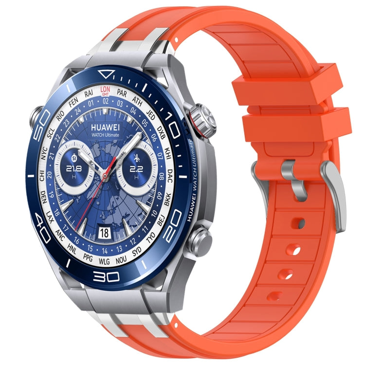 Huawei Watch Ultimate 22mm Silicone Watch Band Strap with Quick Release Silver Buckle (Orange)