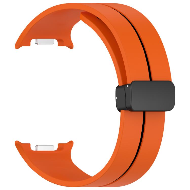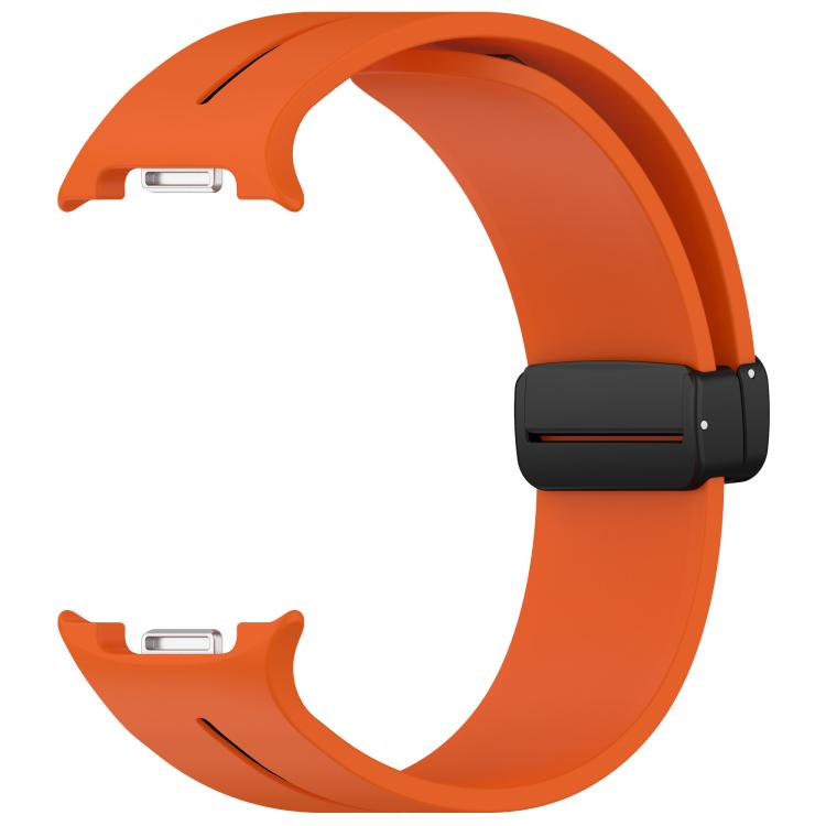 Correa de silicona plegable con hebilla magnética para Samsung Galaxy Watch8/Watch8 Classic (naranja y negro)