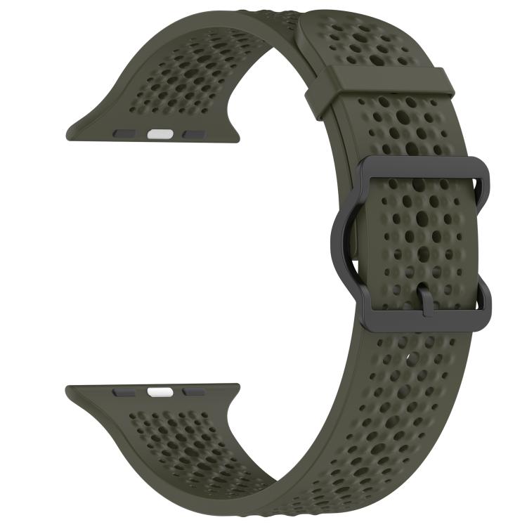 Correa de silicona transpirable para Apple Watch de 46 mm, 49 mm, 45 mm y 44 mm (verde militar)