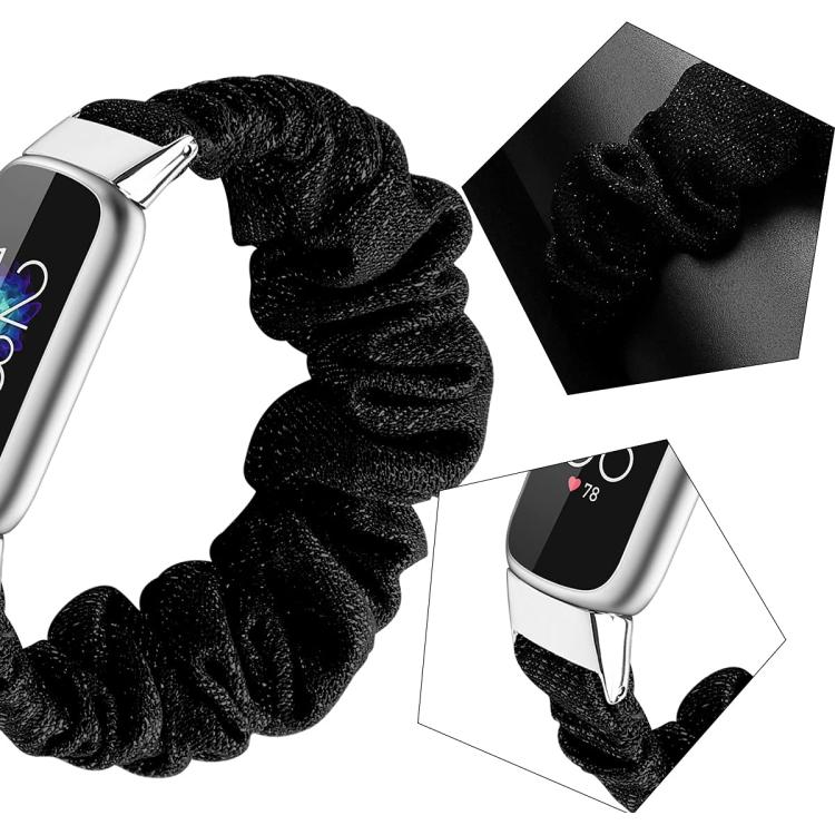 Correa elástica de poliéster xDfind con diseño de corona para Fitbit Luxe, talla S (negro y dorado)
