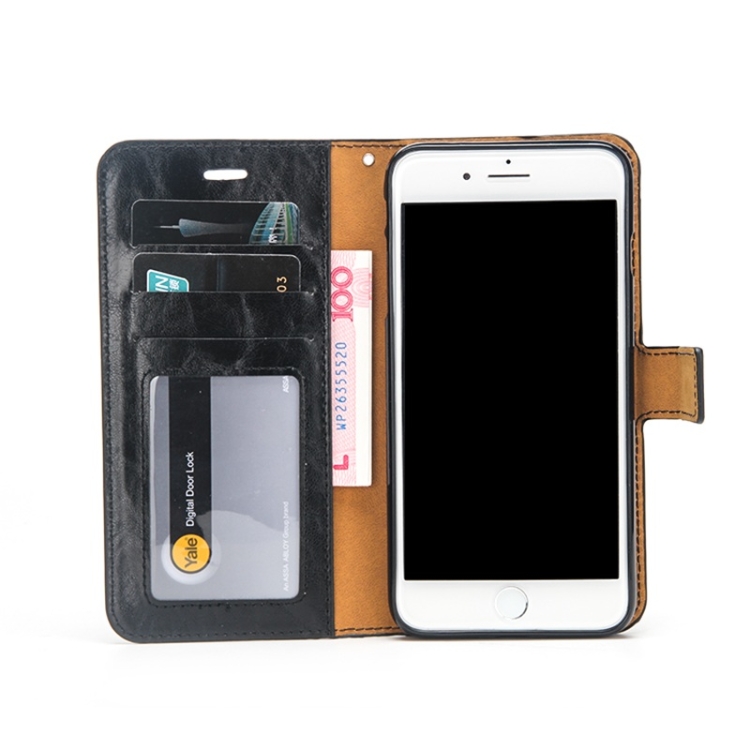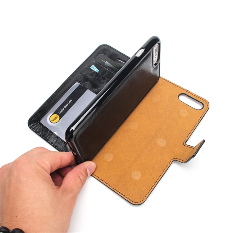 Funda de Cuero Crazy Horse Texture Detachable Magnético Back Town Horizontal Flip con Soporte y Ranuras para Tarjetas y Marco para iPhone 8 Plus / 7 Plus (Negro)