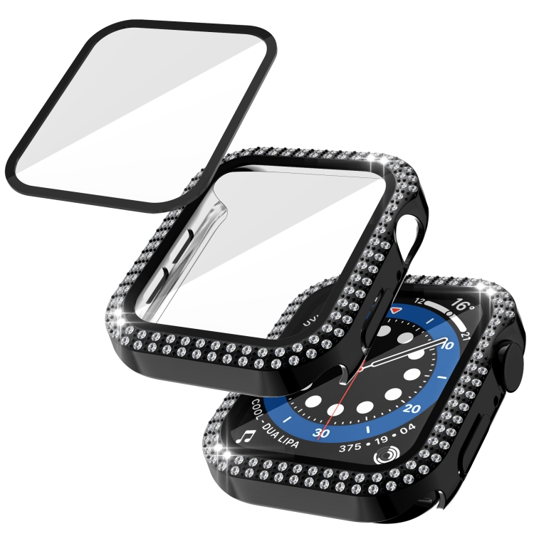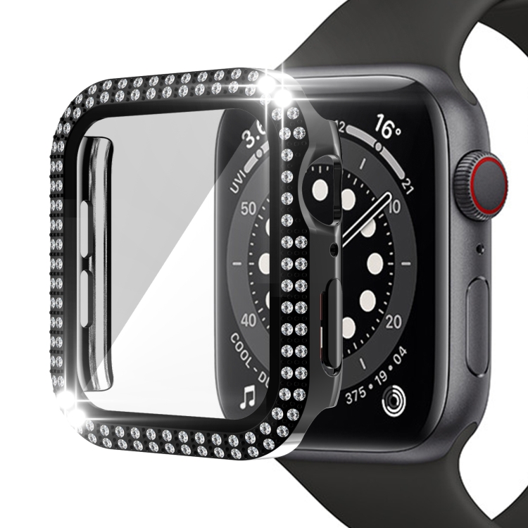 Funda de Reloj + Protector de Vidrio Templado Diamante para Apple Watch Series 3, 2 y 1 38mm (Negro)