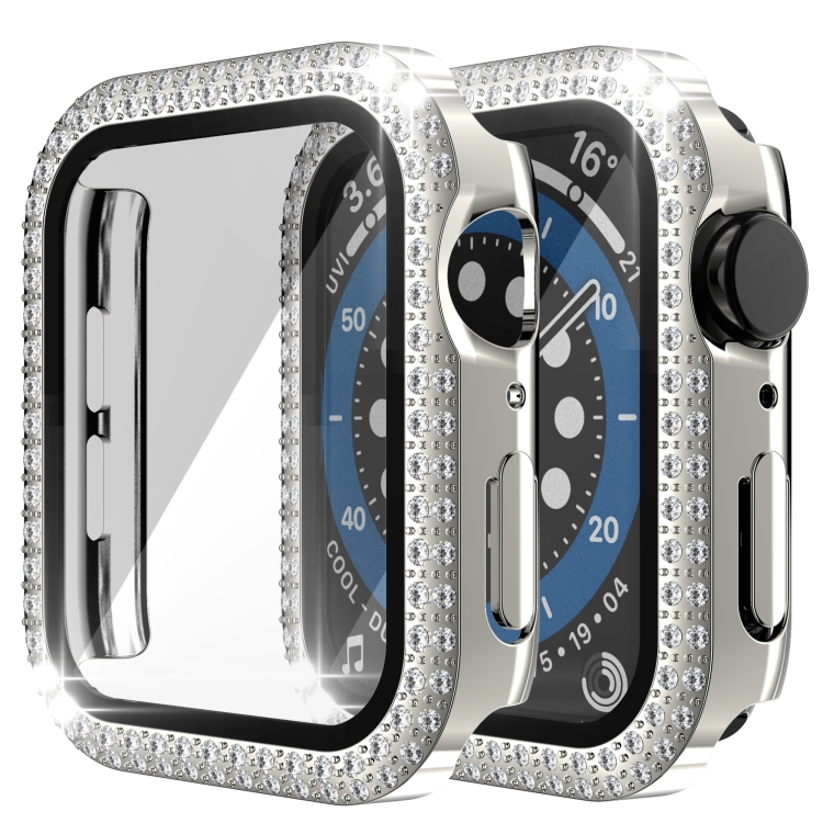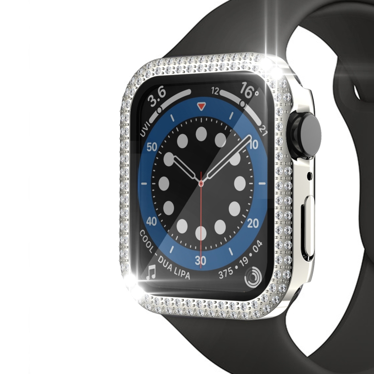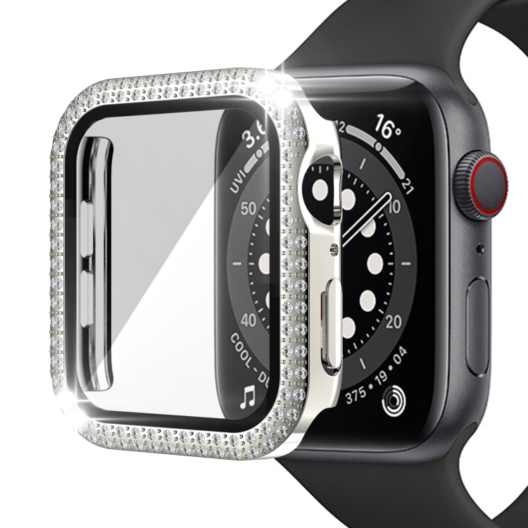 Funda de Reloj + Protector de Vidrio Templado Diamante para Apple Watch Series 6, SE, 5, 4 44mm (Plata)
