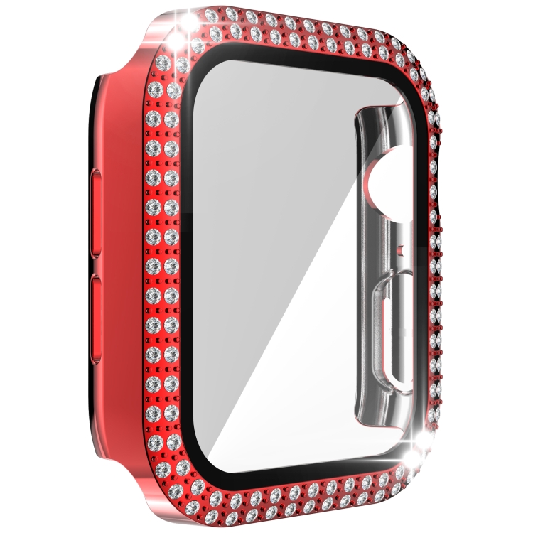 Funda de Reloj + Protector de Vidrio Templado Diamante Diamond PC para Apple Watch Series 6, SE, 5, 4 44mm (Rojo)
