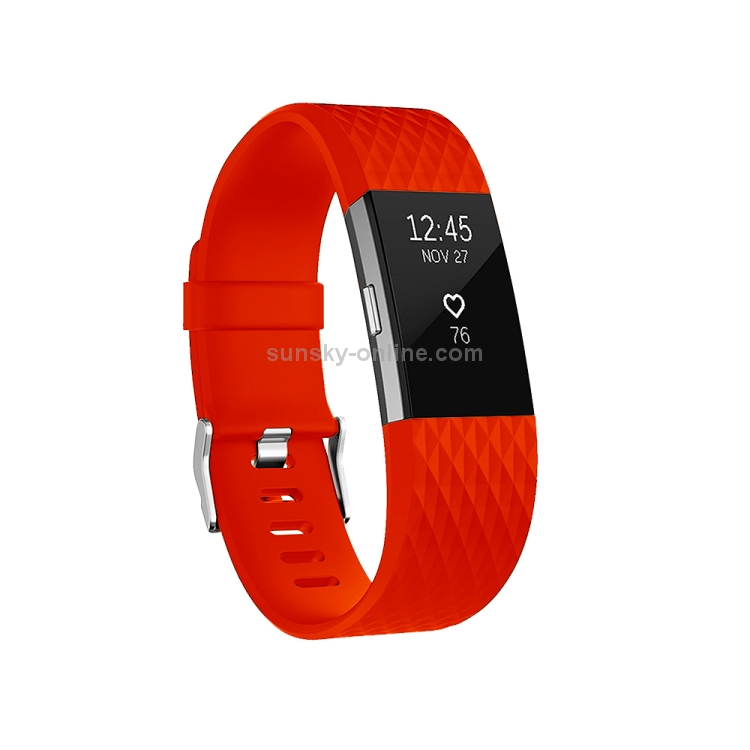 Diamond Pattern Sport Watch Band Fitbit Charge 2 Tamaño L (Rojo Brillante)