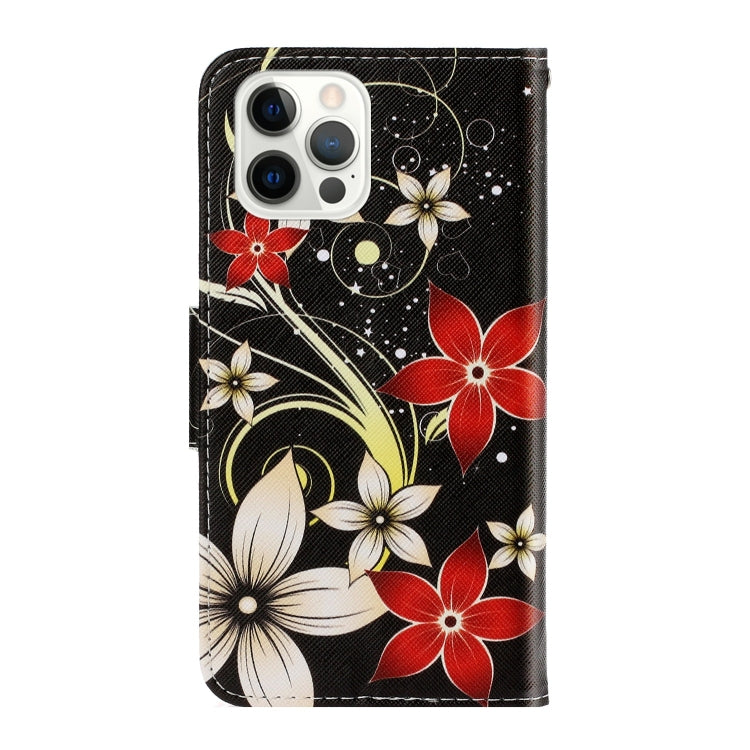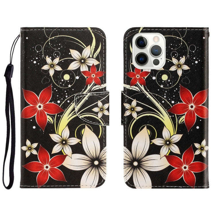 Funda Horizontal de Cuero para iPhone 13 Pro Dibujo Coloreado 3D (Flor Roja)