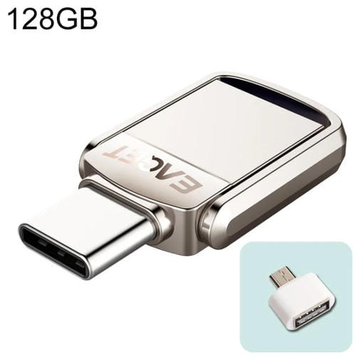 - 1x Unidad Eaget 128G USB 3.1 + Tipo-C / USB-C Interfaz Metal Twister Flash U Disco con Adaptador Micro USB OTG