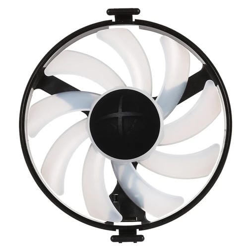 El enfriador de GPU con Ventilador para Tarjetas gráficas VGA es un componente diseñado específicamente para los modelos XFX RX470 y RX480. Su función principal es mejorar la disipación de calor generada durante el funcionamiento de la Tarjeta gráfica, asegurando un rendimiento térmico eficiente y prolongando la vida útil del hardware. Este Ventilador incorpora un sistema de iluminación en color Rojo que añade un efecto visual distintivo, adecuado para usuarios que buscan mantener temperaturas óptimas en sus sistemas con un toque estético adicional. Es compatible con las Tarjetas mencionadas y está fabricado para ofrecer un bajo nivel de ruido durante su operación, garantizando un ambiente silencioso mientras mantiene la GPU en condiciones térmicas adecuadas.